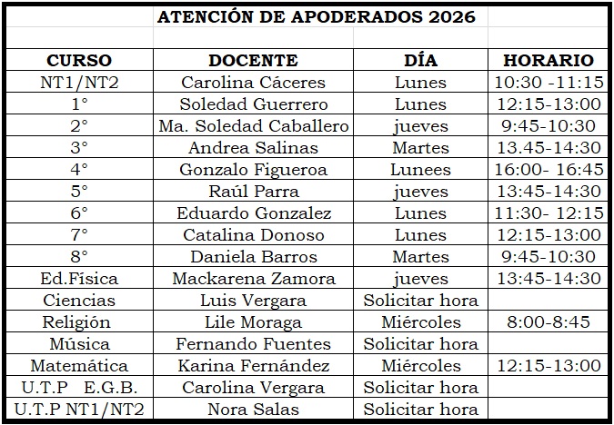 Si necesita agendar una entrevista con algún profesor, puede hacerlo por correo electrónico en los siguientes horarios.